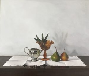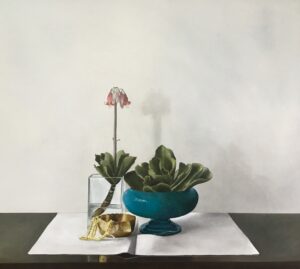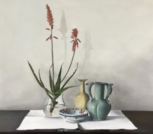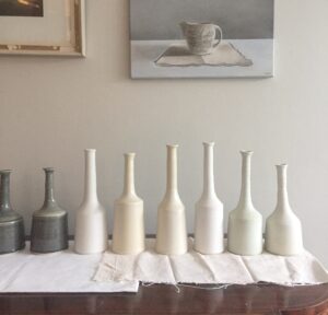 “In my paintings and ceramics I aim to capture the quietness and sacredness of each object. I choose purposeful objects, each with their own history and domestic appeal.”